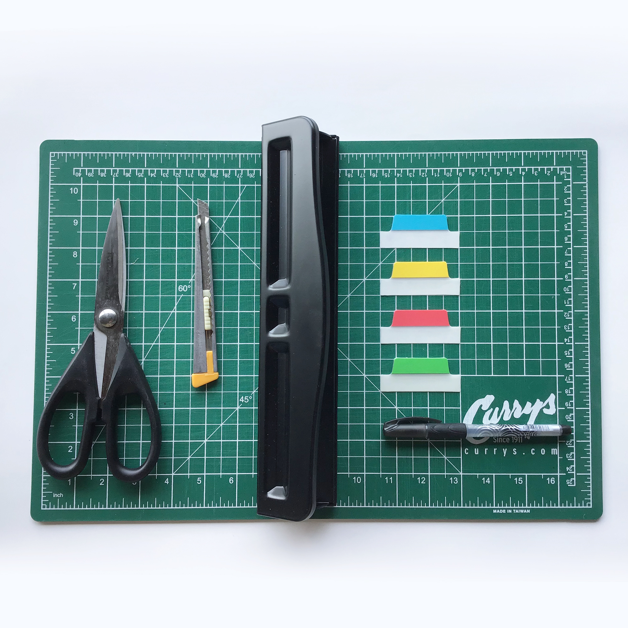 - Any ol’ 3-hole punch will do. Find one here